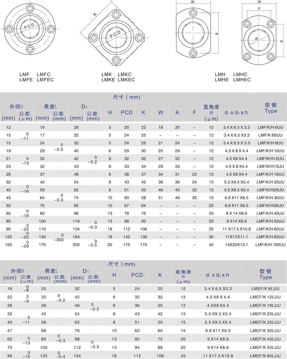 產品名稱:LMF-UU/LMK-UU/LMH-UU